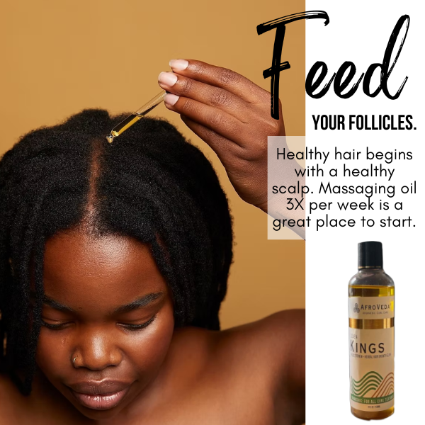 When starting your healthy hair regimen, begin with a warm oil treatment on dry hair prior to shampooing. Cover hair with a plastic cap and leave oil in for 30 minutes.